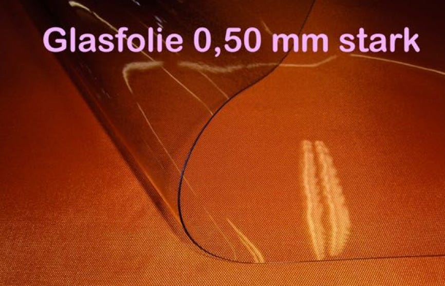 Glasfolie 0,50mm stark, 137 cm breit.